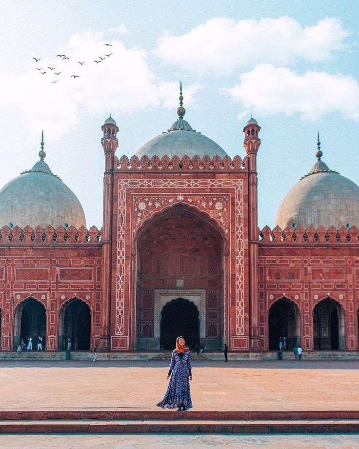 ساخت این مسجد سرخ رنگ در سال 1671 میلادی آغاز شده و دوسال به طول انجامید، اگر از کنار آرامگاه اقبال لاهوری چند قدم پیش روی میتوانی به پلههای ورودی مسجد پادشاهی برسی و به سادگی آن را از طریق 8 مناره و 3گنبد سفید رنگش بشناسی، منارههای این مسجد 53 متر ارتفاع دارند و صحن آن گنجایش 56 هزار نمازگزار را دارد.